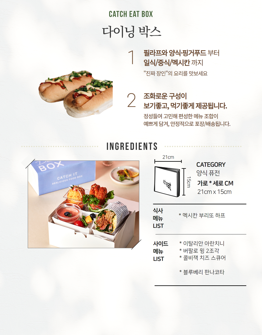 * 뷔페식 박스 케이터링은 앞접시/ 집게등 집기류가 무료로 함께 제공됩니다.
