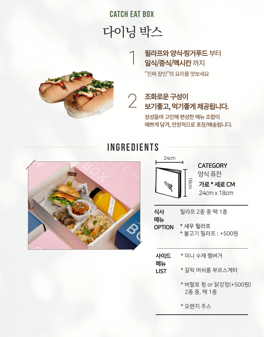 * 뷔페식 박스 케이터링은 앞접시/ 집게등 집기류가 무료로 함께 제공됩니다.