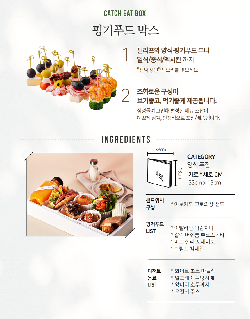 아보카도 크로와상 샌드위치와 핑거푸드4종&디저트 4종 으로 2만원대의 예산에 추천드리는 구성입니다.