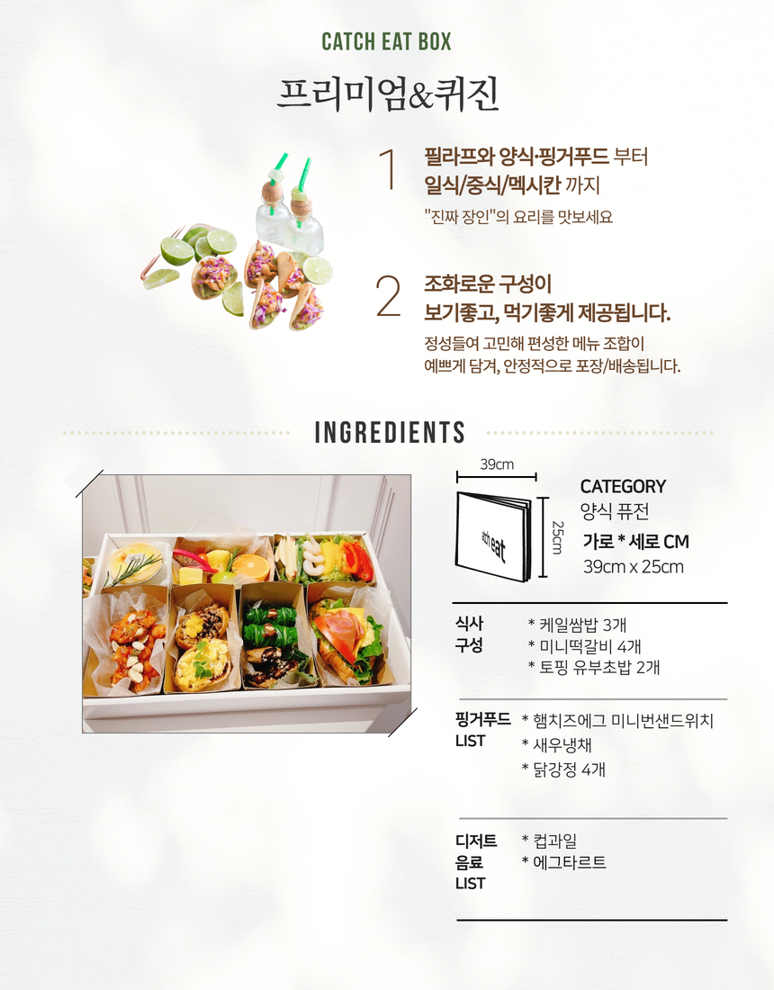 * 뷔페식 박스 케이터링은 앞접시/ 집게등 집기류가 무료로 함께 제공됩니다.