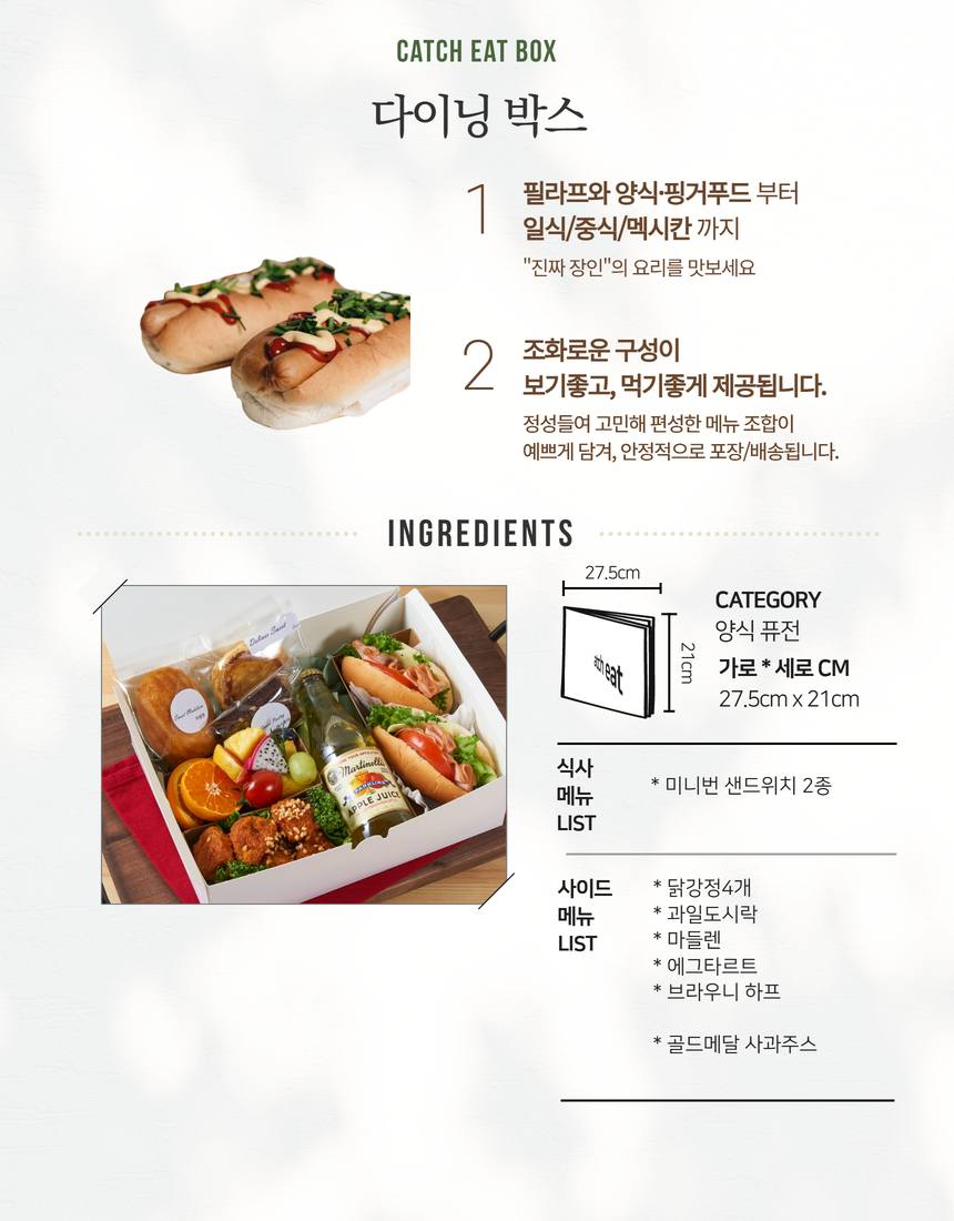 * 뷔페식 박스 케이터링은 앞접시/ 집게등 집기류가 무료로 함께 제공됩니다.