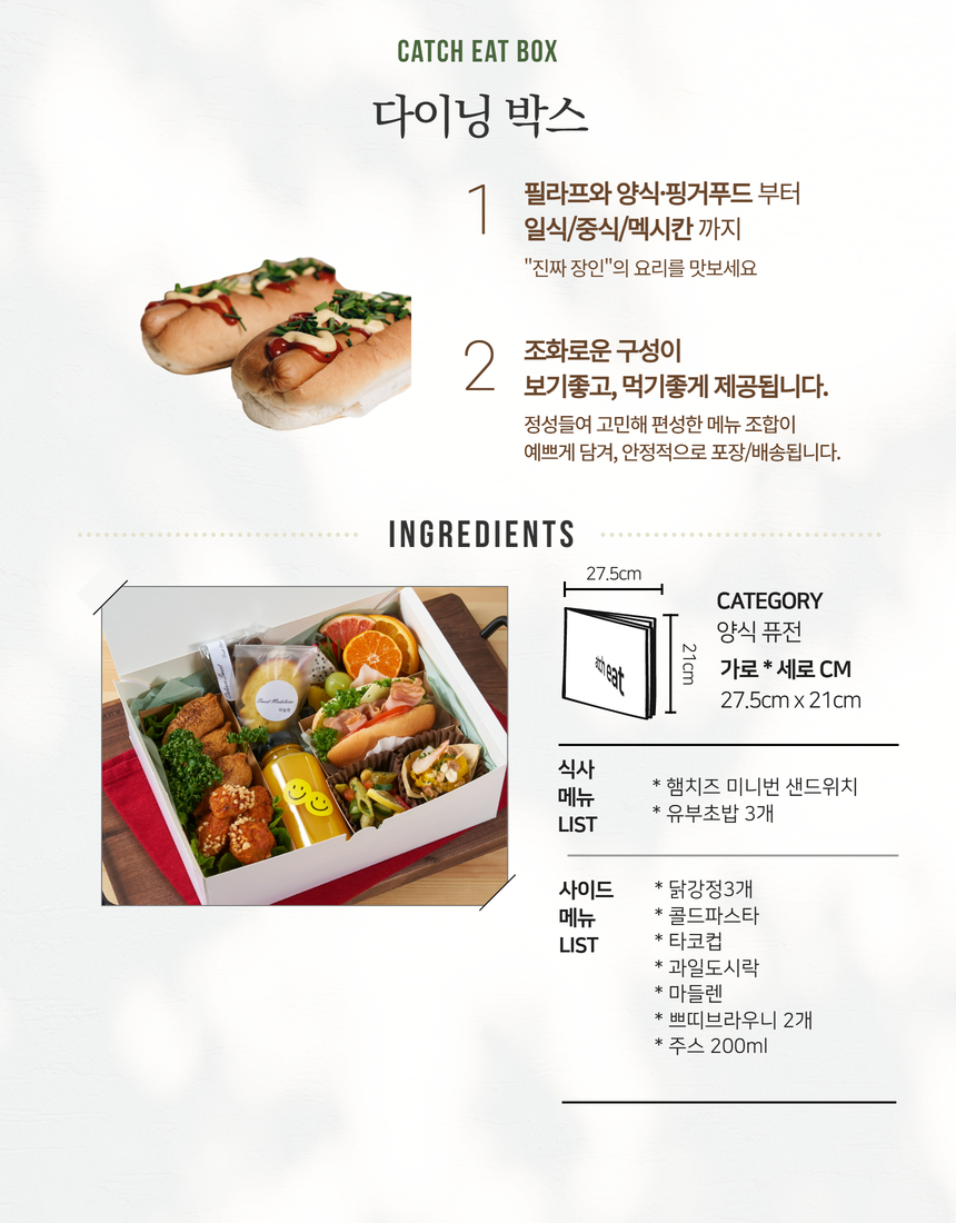 * 뷔페식 박스 케이터링은 앞접시/ 집게등 집기류가 무료로 함께 제공됩니다.