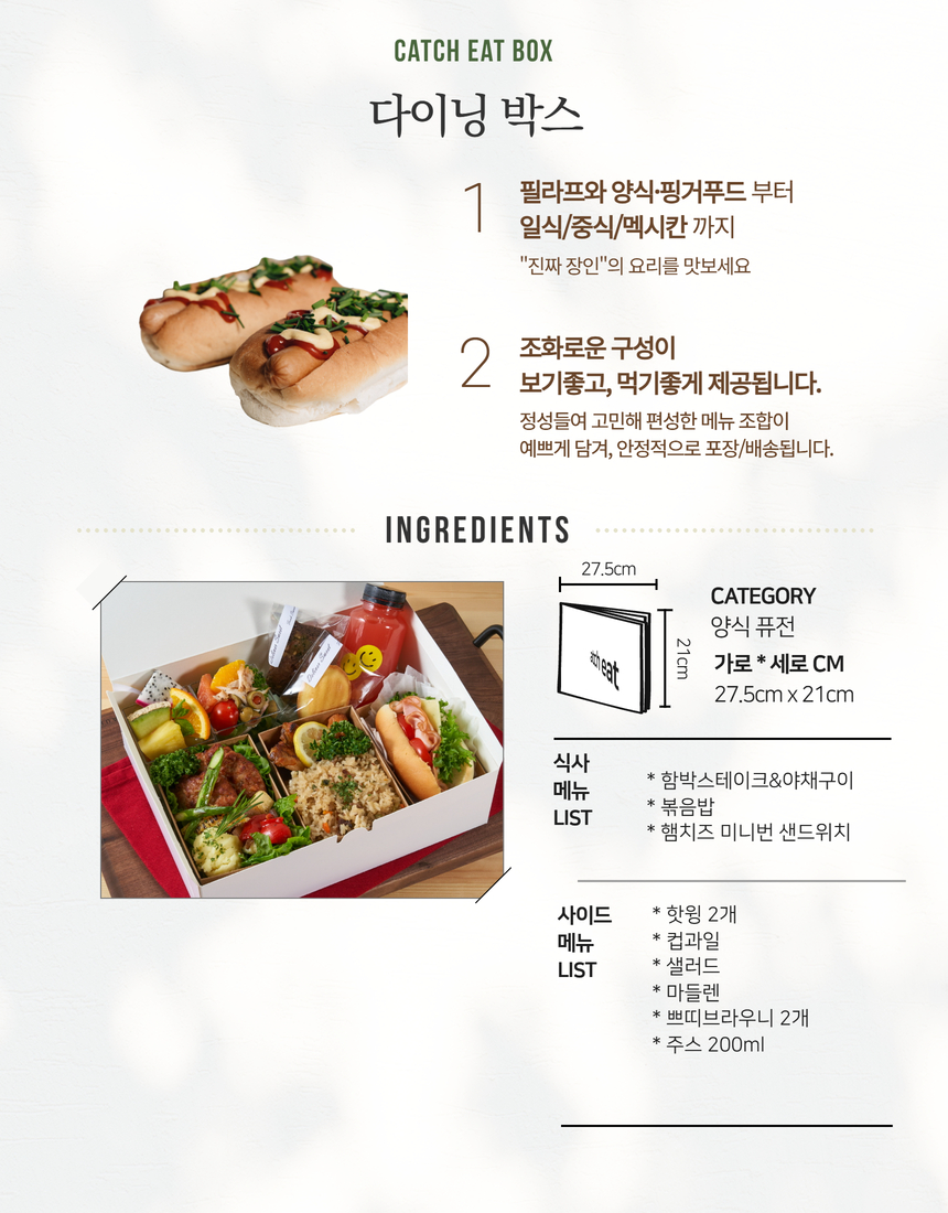 * 뷔페식 박스 케이터링은 앞접시/ 집게등 집기류가 무료로 함께 제공됩니다.